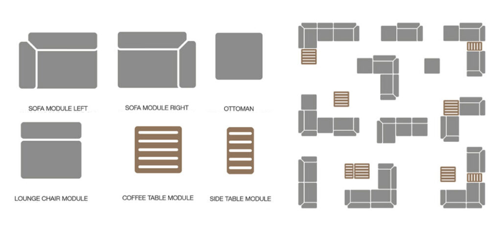 Explore our versatile collection featuring two sofa end modules (one left and one right), a lounge chair module, and a cozy ottoman – all designed with a sturdy powder-coated steel frame and cushions made from water-resistant fabric. Elevate your outdoor space with our thoughtfully crafted pieces. To complete the ensemble, we also provide stylish additions like a coffee table and a convenient side table. Upgrade your patio with a perfect blend of durability and comfort.